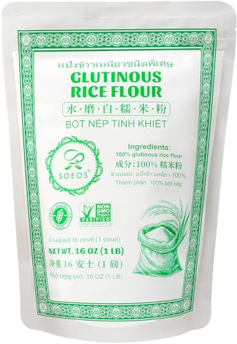 Soeos Glutinous Rice Flour 16 Ounce (Basic), 1 Pack Rice Flour for Baking or Cooking, All Natural White Rice Flour, Vegan, Gluten-Free