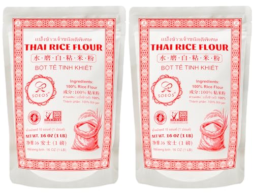 Soeos Thai Rice Flour 32 Ounce (Basic), Rice Flour for Baking or Cooking, All Natural White Rice Flour for Sourdough Bread, Vegan, Gluten-Free